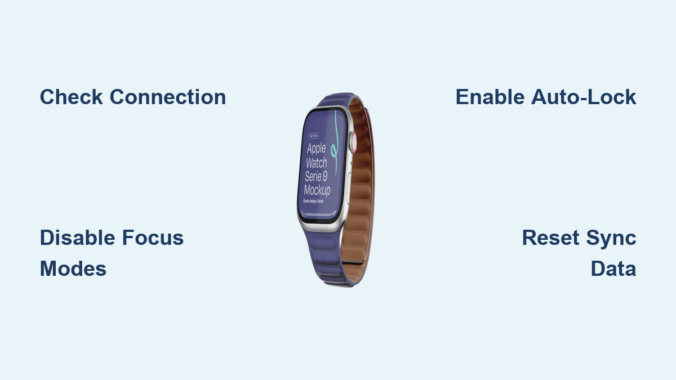 Apple’s system sends notifications to the locked device. If your iPhone stays unlocked, the watch won’t trigger alerts—even if you’re wearing it.