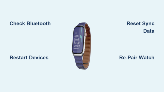 Apple Watch relies on Bluetooth and Wi-Fi to sync, both of which weaken with distance or interference. Place your devices side by side, avoiding thick walls, metal surfaces, or crowded wireless environments.